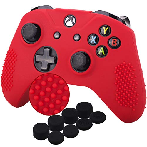 YoRHa Studded Silicone Cowl Pores and skin Case for Microsoft Xbox One X & Xbox One S Controller[After 8.2016 Model] x 1(Crimson) with Professional Thumb Grips 8 Items