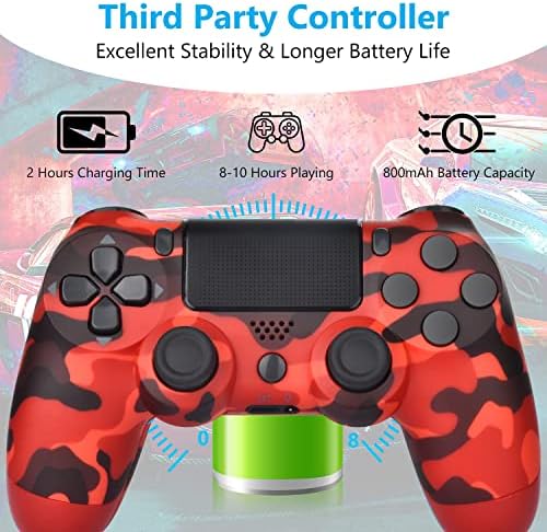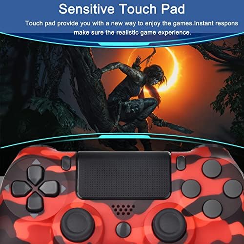 YU33 2 Pack Wi-fi Controller PS4,Works with Ps 4 System, Gaming Pa4 Distant Management,Nice Crimson Camo Joystick Reward for Christmas and Birthday (Titanium Blue+Crimson Camouflage Mando,Not Authentic)