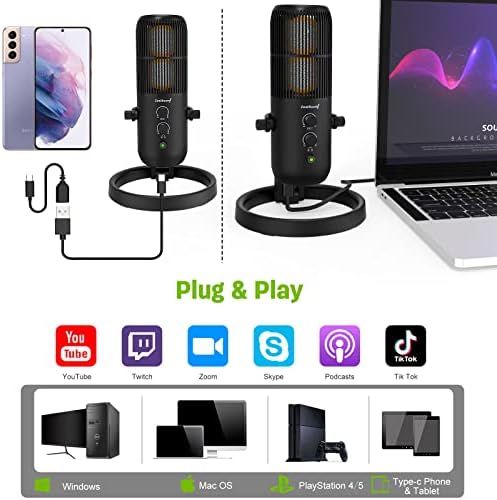 ZealSound Twin Diaphragm Microphone,16mm Capsule Recording Condenser Mic,Mute Button/Monitor Headphone Jack,Achieve Management for PC and Kind C Cellphone/Vocal YouTube Streaming Gaming ASMR Zoom Class TIK Tok