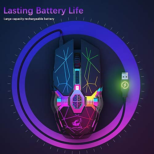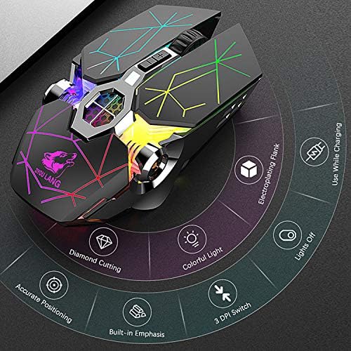 Zienstar- 2.4Ghz Wi-fi Gaming Mouse with USB Receiver,2400DPI,7 Colours Backlit,Slient Click on,Rechargeable 500Mah Lithium Battery-Black