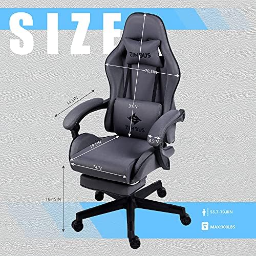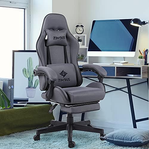 Zimous Gaming Chair Material Recreation Chair with Pocket Spring Cushion Workplace Therapeutic massage Chair Breathable Reclining Pc Chair with Footrest Adjustable Swivel Ergonomic Gamer Chair 290LBS (Grey)