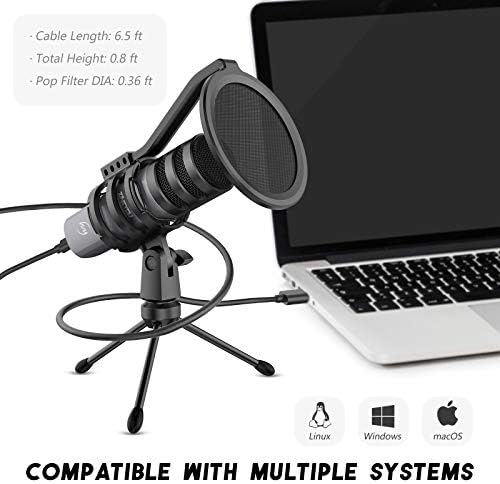 [Real Plug & Play] Comes with initial installation, you only need to attach pop filter to shock mount, and then plug in the cable. USB-powered design means no need for the 48v phantom power supply. With a USB 2.0 port, the mic can be quickly recognized by the computer, and no additional driver is required. The mic has a cardioid pickup pattern, allowing it to capture your voice properly and suppress unwanted background noise. Use in a quiet environment will bring you the best recording effect